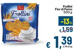 | Frollini Fior di Forno 500 g | Qui Discount | €1,59 | €1,39 | -13% | 23 settembre 2025 | 05 ottobre 2025 | |