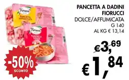 | Pancetta a dadini fiorucci dolce/affumicata 140 g | èccoMI | €3,69 | €1,84 | €1,85 Sconto | 23 aprile 2026 | 06 maggio 2026 | |