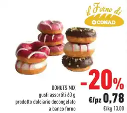 | Donuts mix prodotto dolciario decongelato a banco forno | Conad | €0,78 | -20% | 05 gennaio 2026 | 13 gennaio 2026 | ||