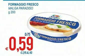 | Malga Paradiso Formaggio Fresco Spalmabile 200 G(ml) | MD Discount | €0,75 | €0,59 | €0,16 Sconto | 11 giugno 2021 | 20 giugno 2021 | |