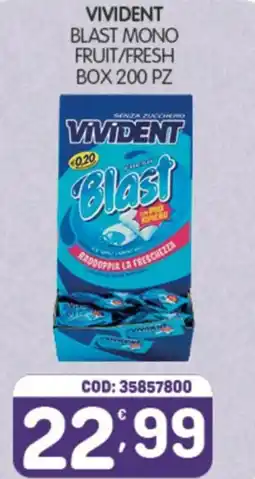 | Vivident blast mono fruit/fresh box 200 pz | Eurocash | €22,99 | 02 febbraio 2026 | 22 febbraio 2026 | |||