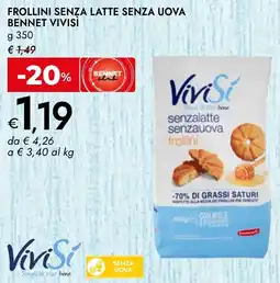 | Frollini ricchi di fibre con farina integrale bennet vivisi | Bennet | €1,39 | €1,11 | €0,28 Sconto | 12 maggio 2022 | 25 maggio 2022 | |