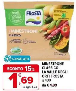 | Minestrone classico la valle degli ORTI FROSTA 400 g | Iperal | €1,99 | €1,69 | -15% | 21 gennaio 2026 | 03 febbraio 2026 | |