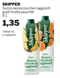 | SKIPPER Succo senza zuccheri aggiunti gusti frutta assortiti 1 lt | GrosMarket | €1,35 | 17 dicembre 2025 | 06 gennaio 2026 |