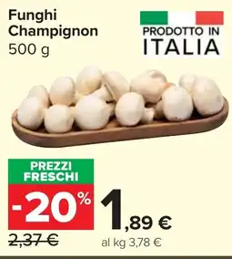 | 2 | Funghi Champignon 500 g | Carrefour Market | €2,36 | €1,89 | -20% | 05 maggio 2026 | 18 maggio 2026 | Guarda l'offerta | |