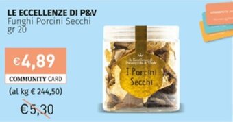 | LE ECCELLENZE DI P&V Funghi Porcini Secchi gr 20 | Prezzemolo e Vitale | €5,30 | €4,70 | €0,60 Sconto | 08 agosto 2023 | 19 agosto 2023 | |