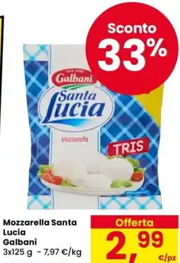 | Mozzarella Santa Lucia Galbani | Despar | €4,46 | €2,99 | -33% | 22 gennaio 2026 | 04 febbraio 2026 | |