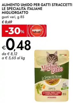 | Alimento umido per gatti straccetti le specialita italiane MIGLIORGATTO 85 g | Bennet | €0,69 | €0,48 | -30% | 30 aprile 2026 | 13 maggio 2026 | |