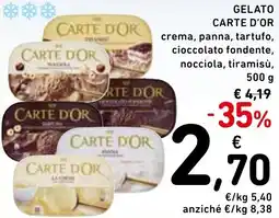 | GELATO CARTE D'OR vari tipi 500 g | Spazio Conad | €5,14 | €3,69 | €1,45 Sconto | 28 luglio 2023 | 07 agosto 2023 | |