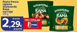 | Pasta fresca ripiena Gioiaverde GIOVANNI RANA 250 g | Iper La Grande | €3,82 | €2,29 | €1,53 Sconto | 07 aprile 2026 | 19 aprile 2026 | |