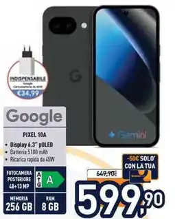 | Google PIXEL 9a 5G | Unieuro | €379,90 | 03 aprile 2026 | 16 aprile 2026 | |||