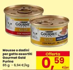 | Mousse o dadini per gatto assortiti Gourmet Gold Purina 85 g | Despar | €0,59 | 30 aprile 2026 | 13 maggio 2026 | |||