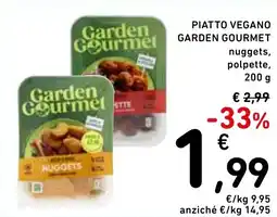 | Piatto vegano GARDEN GOURMET 200 g | Spazio Conad | €2,97 | €1,99 | -33% | 17 aprile 2026 | 29 aprile 2026 | |