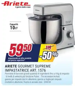 | Ariete gourmet supreme impastatrice art. 1576 | Trony | €119,00 | €59,50 | -50% | 19 febbraio 2026 | 18 marzo 2026 | |