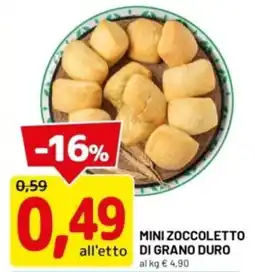 | 2 | Mini zoccoletto di grano duro | DPiù | €0,59 | €0,49 | -16% | 30 aprile 2026 | 10 maggio 2026 | Guarda l'offerta | |