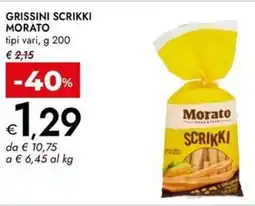 | Grissini scrikki MORATO 200 g | Bennet | €2,15 | €1,29 | -40% | 02 gennaio 2025 | 15 gennaio 2025 | |
