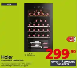 | Haier CANTINETTA DA 34 BOTTIGLIE HWS34GGH1 | Comet | €349,00 | 03 febbraio 2026 | 14 febbraio 2026 | |||