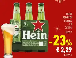 | BIRRA HEINEKEN classica, 0.0, 33 cl x3 | Conad | €2,49 | 27 luglio 2023 | 06 agosto 2023 | |||