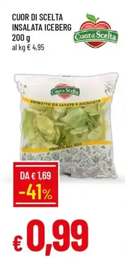 | Cuor di scelta insalata iceberg 200 g | IperFamila | €1,68 | €0,99 | -41% | 22 gennaio 2026 | 01 febbraio 2026 | |
