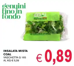 | 3 | Insalata mista coal vaschetta 165 g | èccoMI | €0,89 | 22 gennaio 2026 | 04 febbraio 2026 | Guarda l'offerta | |||