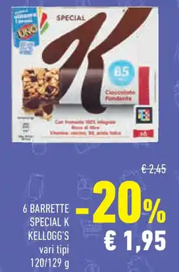 | BARRETTE DI CEREALI SPECIAL K KELLOGG'S 129 g | Conad | €3,15 | €2,49 | €0,66 Sconto | 17 aprile 2024 | 28 aprile 2024 | |
