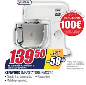 | Kenwood Impastatore KMX750 | Trony | €279,00 | €139,50 | €139,50 Sconto | 09 febbraio 2023 | 08 marzo 2023 | |
