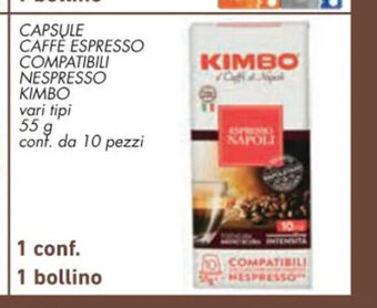 | CAPSULE CAFFÈ ESPRESSO COMPATIBILI NESPRESSO KIMBO vari tipi 220 g conf. da 40 pezzi | Conad | €11,20 | €6,90 | €4,30 Sconto | 01 maggio 2024 | 14 maggio 2024 | |