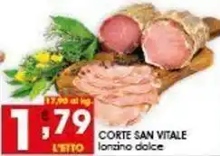 | CORTE SAN VITALE L'ETTO lonzino dolce | Iper Pellicano | €1,79 | 11 febbraio 2026 | 18 febbraio 2026 |