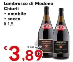 | 1 | Lambrusco di Modena Chiarli 1,5 lt | DeSpar Express | €3,89 | 08 aprile 2026 | 22 aprile 2026 | Guarda l'offerta | |||