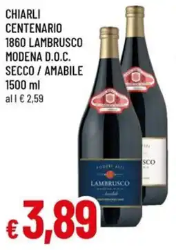 ![]() | Chiarli centenario 1860 lambrusco modena d.o.c. secco / amabile 1500 ml | Famila | €3,89 | 17 ottobre 2024 | 30 ottobre 2024 | ||