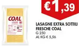 | Lasagne extra sottiu fresche COAL 250 g | Coal | €1,39 | 05 febbraio 2026 | 17 febbraio 2026 | |||