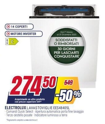 | ELECTROLUX LAVASTOVIGLIE EES4 8405L | Trony | €599,00 | €549,00 | €50,00 Sconto | 27 dicembre 2023 | 17 gennaio 2024 | |