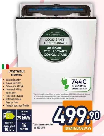 | ELECTROLUX LAVASTOVIGLIE INTEGRATA TOTALE EES48400L | Unieuro | €499,90 | 01 gennaio 2025 | 16 gennaio 2025 | |||