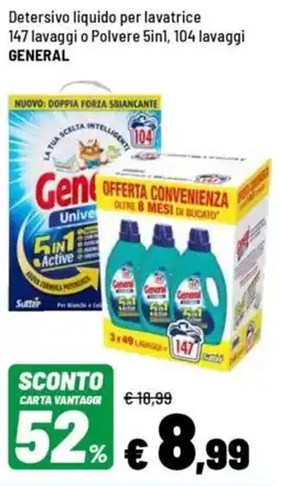 | Detersivo liquido per lavatrice Universale 5in1 132 lavagg GENERAL i | Iper La Grande | €8,99 | 07 agosto 2023 | 20 agosto 2023 | |||