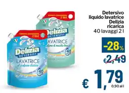 | Detersivo liquido lavatrice Delizia ricarica 2 l | Qui Discount | €2,49 | €1,79 | -28% | 08 aprile 2026 | 19 aprile 2026 | |