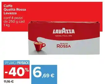 | Caffè Macinato Qualità Rossa Lavazza conf 4 pezzi da 250 g 1 kg | Carrefour | €13,84 | €8,99 | €4,85 Sconto | 11 luglio 2024 | 24 luglio 2024 | |