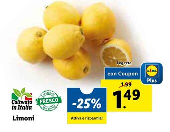| Limoni 1 kg | Lidl | €1,99 | €1,49 | -25% | 27 gennaio 2025 | 02 febbraio 2025 | |