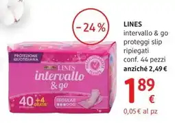 | LINES intervallo & go proteggi slip ripiegati | dm drogerie markt | €2,49 | €1,89 | -24% | 02 febbraio 2026 | 04 marzo 2026 | |