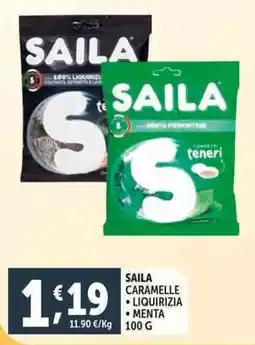 | 2 | Saila caramelle liquirizia menta 100 g | Deco Supermercati | €1,19 | 23 febbraio 2026 | 05 marzo 2026 | Guarda l'offerta | |||