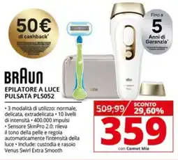 | 2 | BRAUN EPILATORE A LUCE PULSATA PL5052 | Comet | €509,99 | €359,00 | Sconto 29.60% | 22 gennaio 2026 | 04 febbraio 2026 | Guarda l'offerta | |