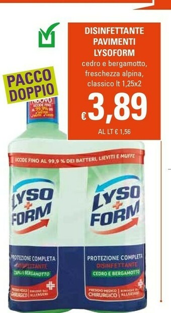 ![]() | Lysoform Disinfettante Pavimenti | Basko | €1,99 | 07 settembre 2021 | 20 settembre 2021 | ||