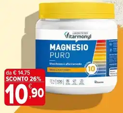 | 1 | Vitarmonyl magnesio puro | Iperal | €14,75 | €10,90 | -26% | 22 aprile 2026 | 05 maggio 2026 | Guarda l'offerta | |