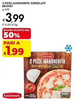 | 2 pizze margherita surgelate BENNET 600 g | Bennet | €3,99 | €1,99 | -50% | 22 gennaio 2026 | 04 febbraio 2026 | |