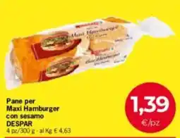 | Pane per Maxi Hamburger con sesamo DESPAR 300 g | Despar | €1,39 | 09 aprile 2026 | 22 aprile 2026 | |||