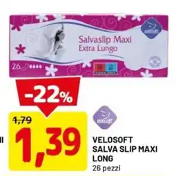 | Velosoft salva slip maxi long 26 pezzi | DPiù | €1,78 | €1,39 | -22% | 09 aprile 2026 | 18 aprile 2026 | |