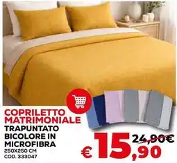 | Copriletto matrimoniale trapuntato bicolore in microfibra | Conforama | €24,90 | €15,90 | €9,00 Sconto | 05 febbraio 2026 | 22 febbraio 2026 |