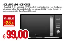 | 2 | MIDEA MAG25XF MICROONDE | Famila | €99,00 | 08 gennaio 2026 | 21 gennaio 2026 | Guarda l'offerta | |||