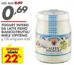 | Yogurt intero da latte fieno bianco/frutta/ miele vipiteno 150 g | Italmark | €0,89 | €0,69 | -22% | 10 dicembre 2025 | 06 gennaio 2026 | |