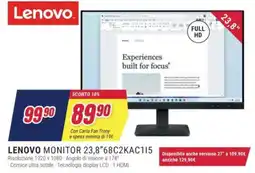 | 1 | LENOVO MONITOR 23,8"68C2KAC115 | Trony | €99,89 | €89,90 | €9,99 Sconto | 28 aprile 2026 | 20 maggio 2026 | Guarda l'offerta | |
