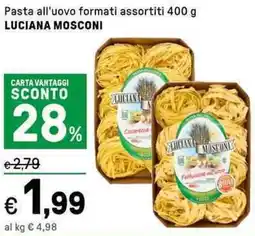 | PASTA ALL’UOVO LUCIANA MOSCONI | Spazio Conad | €2,99 | €2,49 | €0,50 Sconto | 13 febbraio 2026 | 26 febbraio 2026 | |